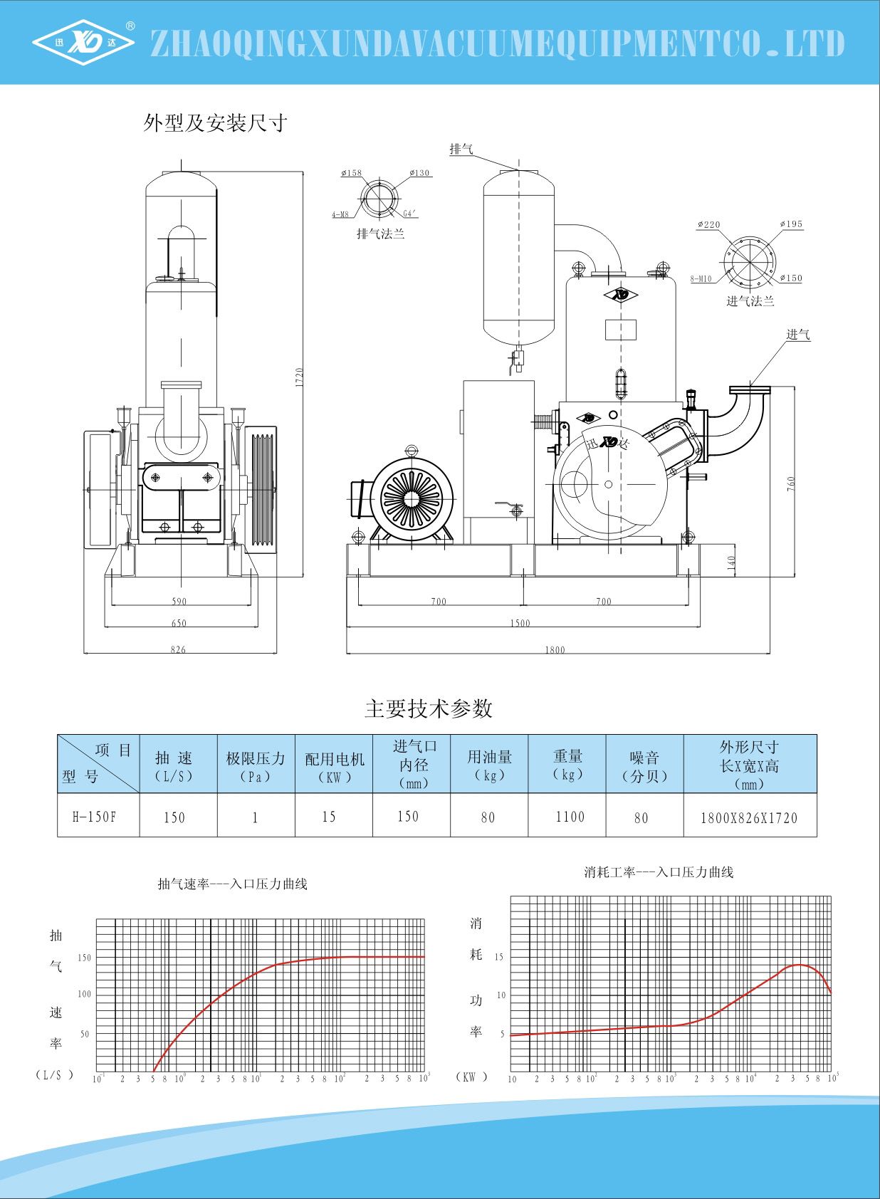 Product name: 迅達(dá)牌H-150F滑閥式真空泵 Product material: 鑄鐵 Driving mode: 電動 Pumping speed: 150L/S Product power: 15kw Extreme pressure: 1Pa Outline size: 1800*826*1720 Inlet diameter: 150mm